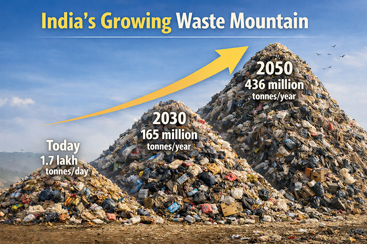 India generates over 1.7 lakh tonnes of municipal solid waste every day, but only about 54% of it is scientifically treated or processed, according to the Central Pollution Control Board (CPCB).